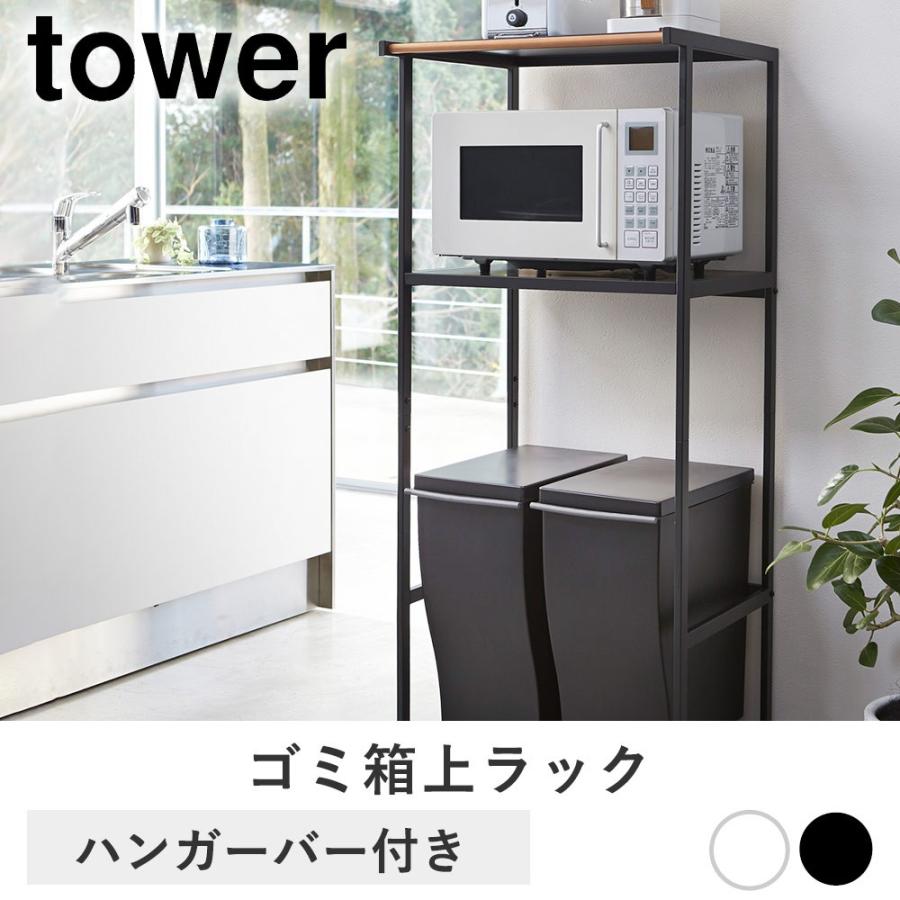 伸縮可能な電子レンジ収納ラック Tower 伸縮レンジラック タワー キッチン 台所用品 収納 電子レンジ 横伸縮 タワーシリーズ 山崎実業